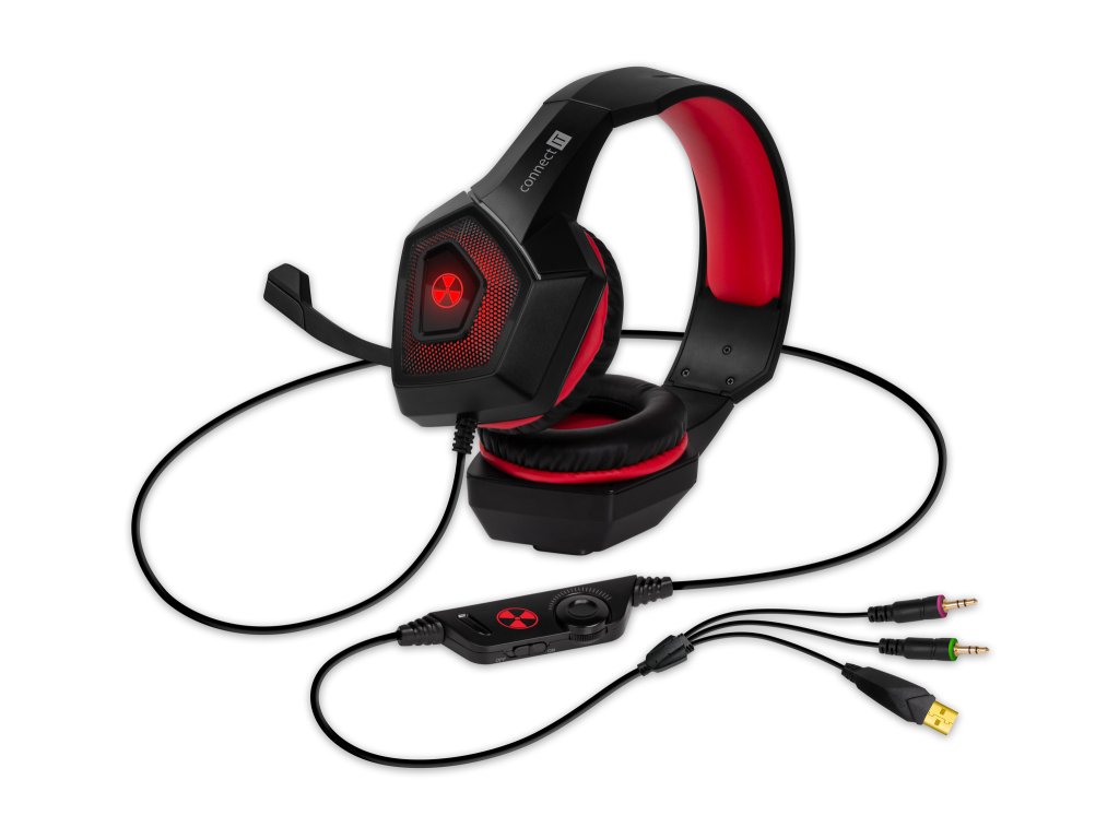 Connect IT Battle RNBW Ed. 2 herní sluchátka s mikrofonem, 2x Jack + USB - červená