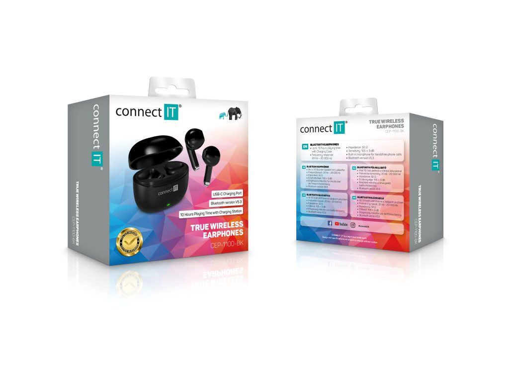 Connect IT True SonicBass bezdrátová sluchátka do uší s mikrofonem - černá