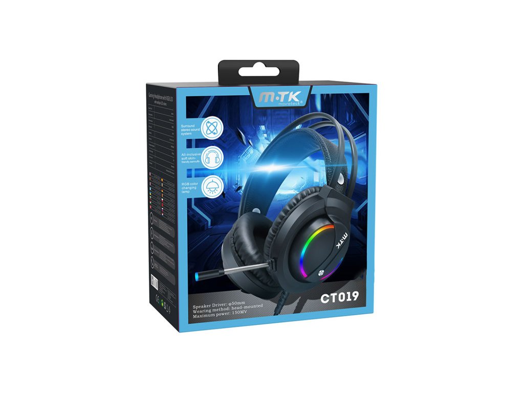Herní sluchátka Moveteck CT019 - RGB - černá