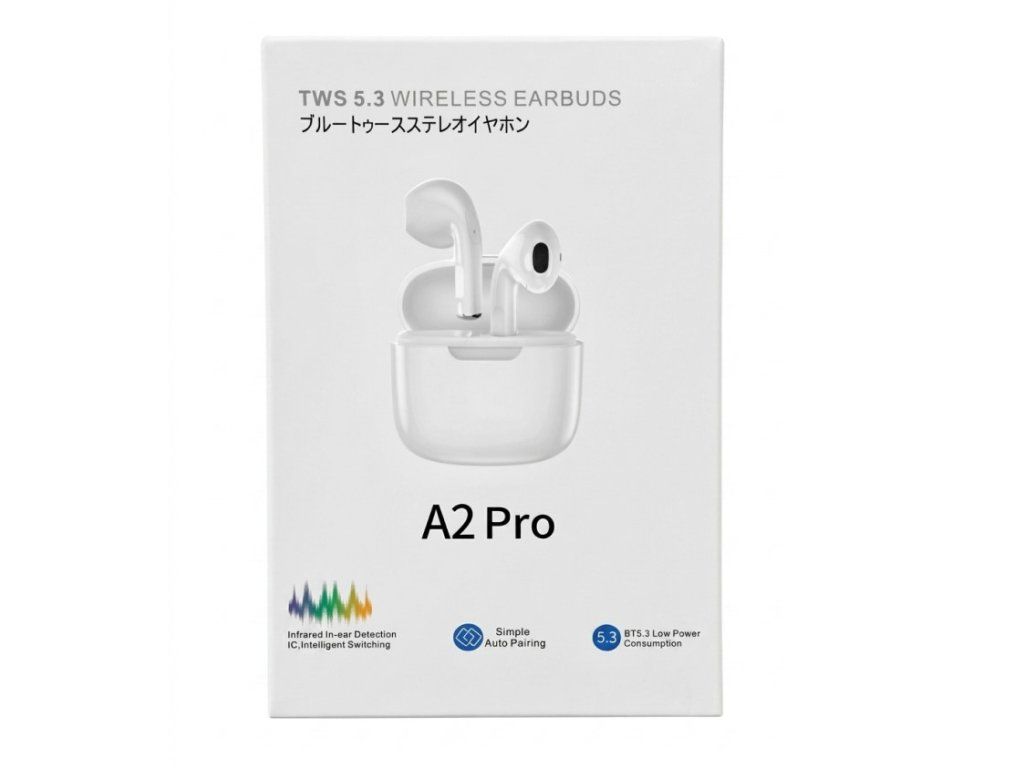 Bezdrátová TWS sluchátka A2 Pro jsou navržena pro moderní uživatele, kteří chtějí kombinaci jednoduchosti, chytrých funkcí a kvalitního zvuku v kompaktním provedení. Elegantní bílé tělo spolu s nabíjecím pouzdrem zajišťuje nejen stylový vzhled, ale také praktické každodenní používání. Díky automatickému párování a intuitivnímu ovládání jsou připravena k použití během několika okamžiků.