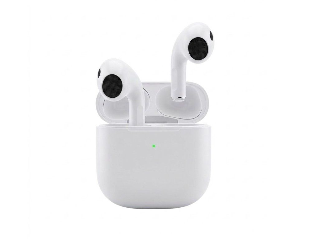 Bezdrátová TWS sluchátka ve stylu AirPods v elegantní bílé barvě nabízí pohodlný poslech bez kabelů a jednoduché používání. Praktické nabíjecí pouzdro zajišťuje snadné dobíjení i přenášení, takže máte hudbu i hovory vždy po ruce.